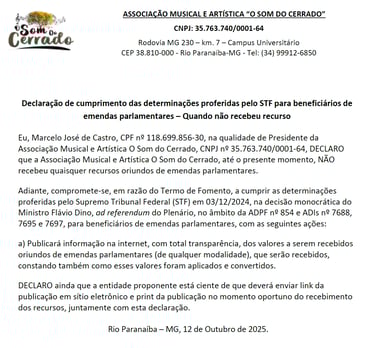 A Associação Musical e Artística O Som do Cerrado é uma organização sem fins lucrativos fundada em 2019, dedicada à formação musical gratuita e à valorização da cultura regional.